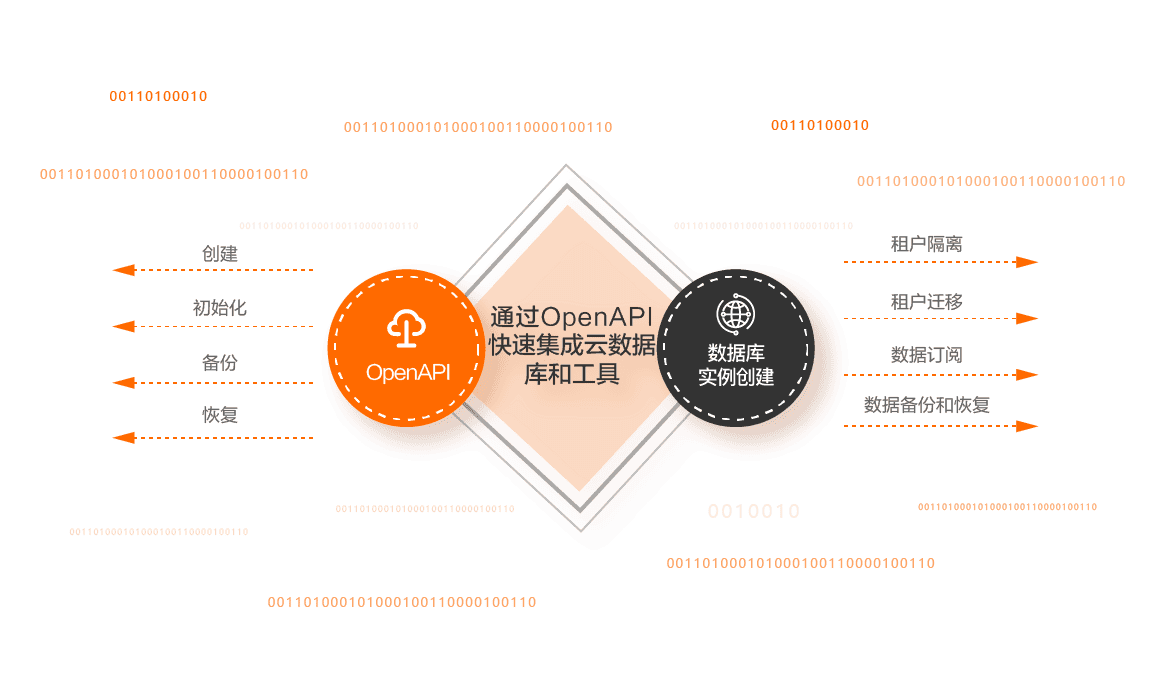 使用OpenAPI可以快速把阿里云DBaaS服务与SaaS控制面集成,在SaaS的本地运维平台实现数据库实例创建,租户DB创建、初始化、备份、恢复等功能,结合数据库和业务监控决定是否需要把大租户迁移到独立的实例。实现租户隔离、租户迁移、数据订阅、数据备份和恢复等功能。