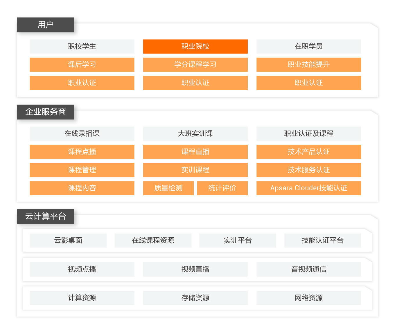 支持 Apsara Clouder 技能认证和培训;支持搭建在线云机房以及实训平台。
